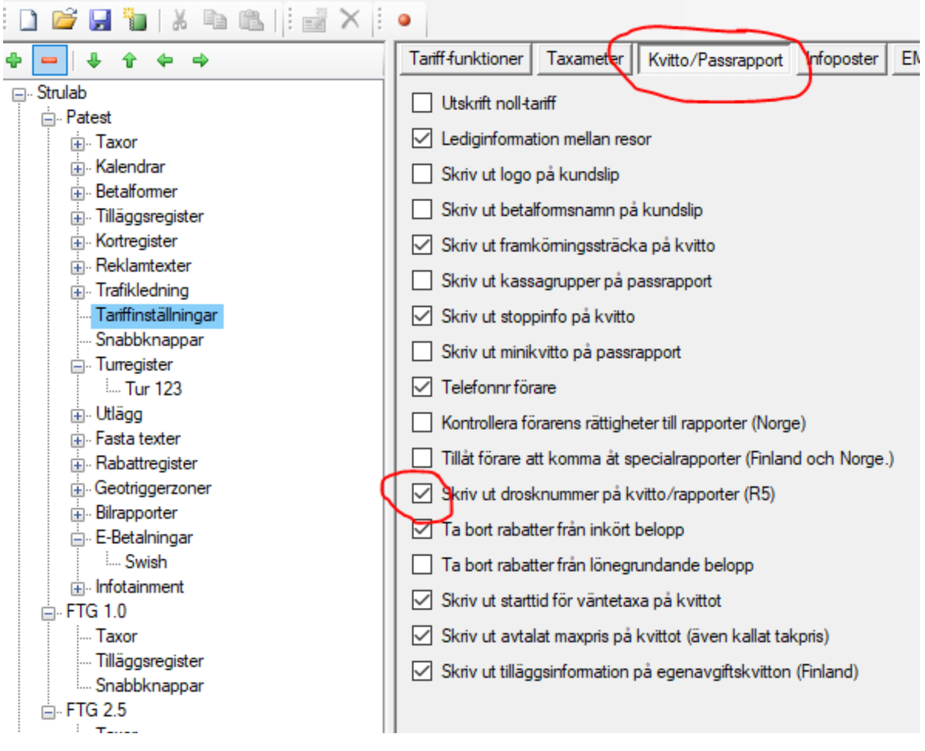 Skriver ut testutskriften vid dubbeltryck på knappen bak, men inte vid skrivning från taxametern. Taxametern säger också att skrivare ej är ansluten.