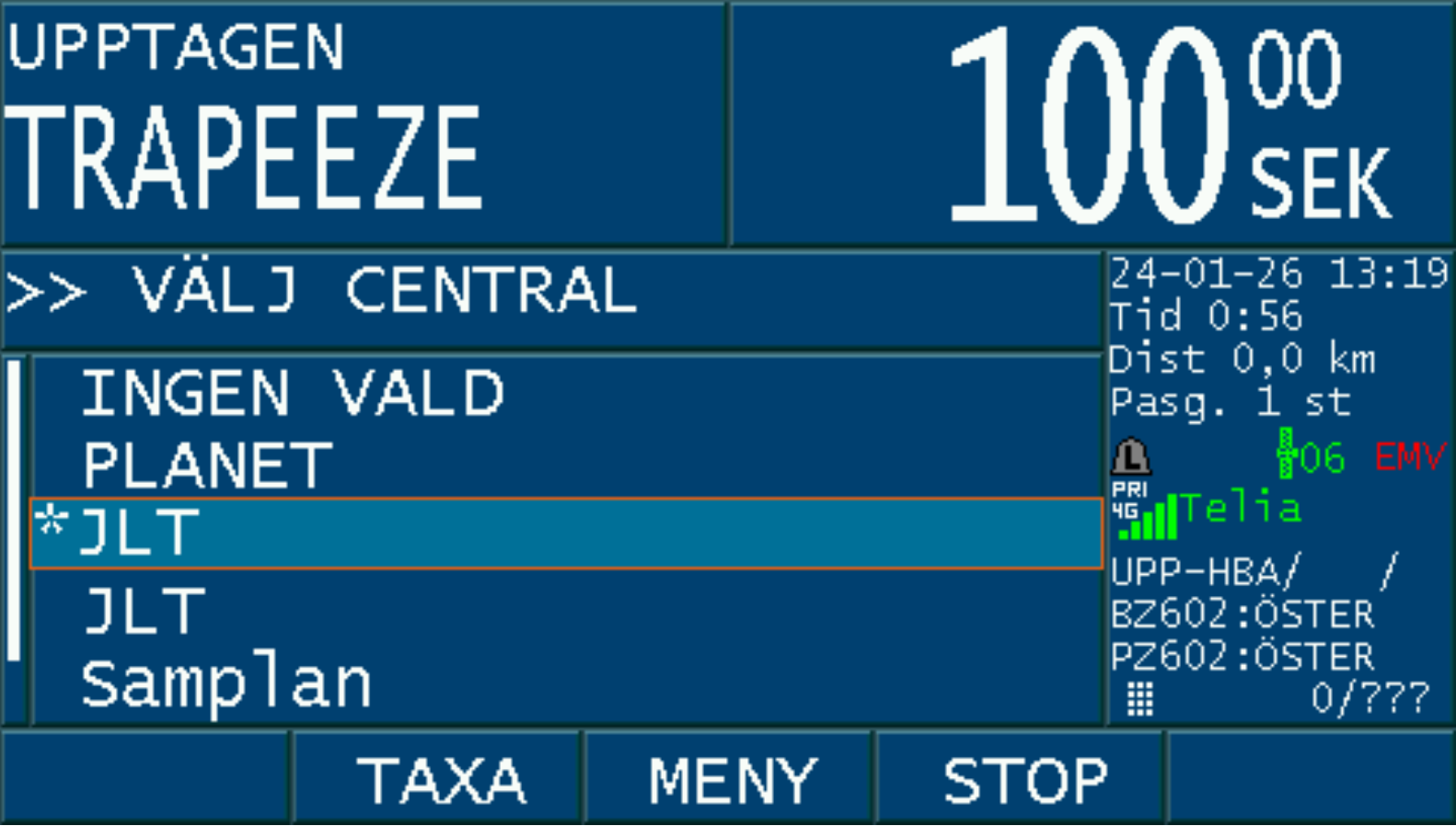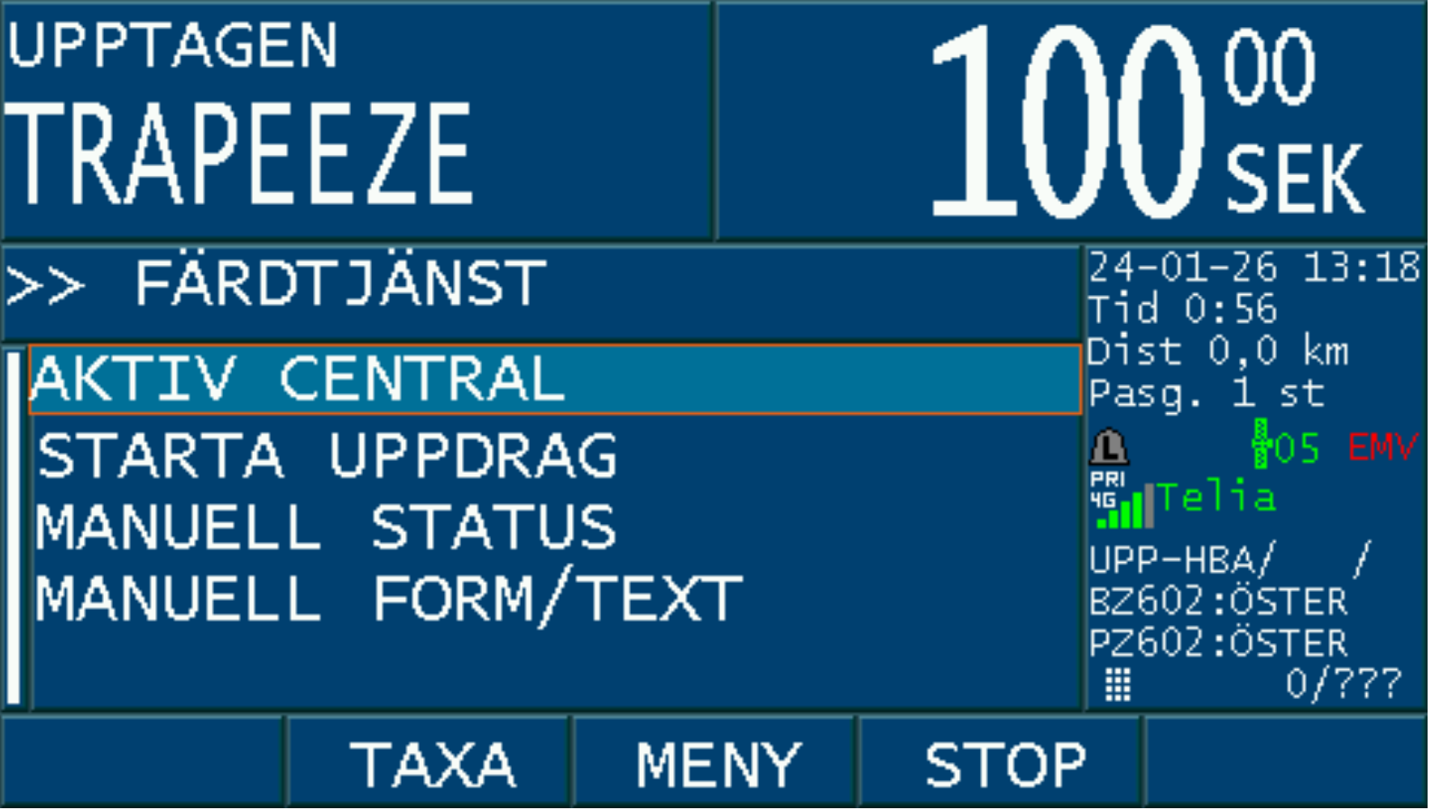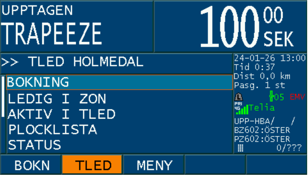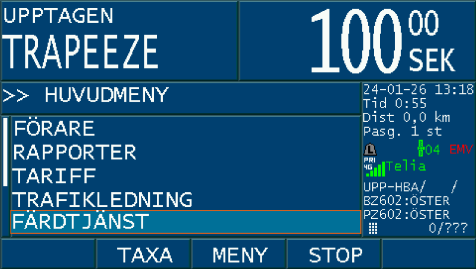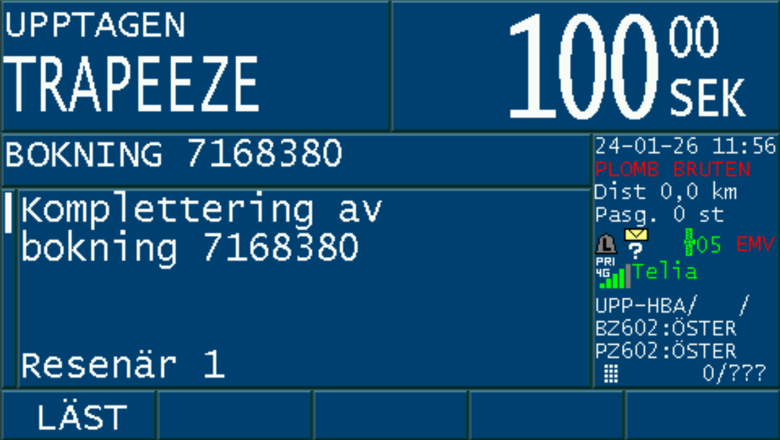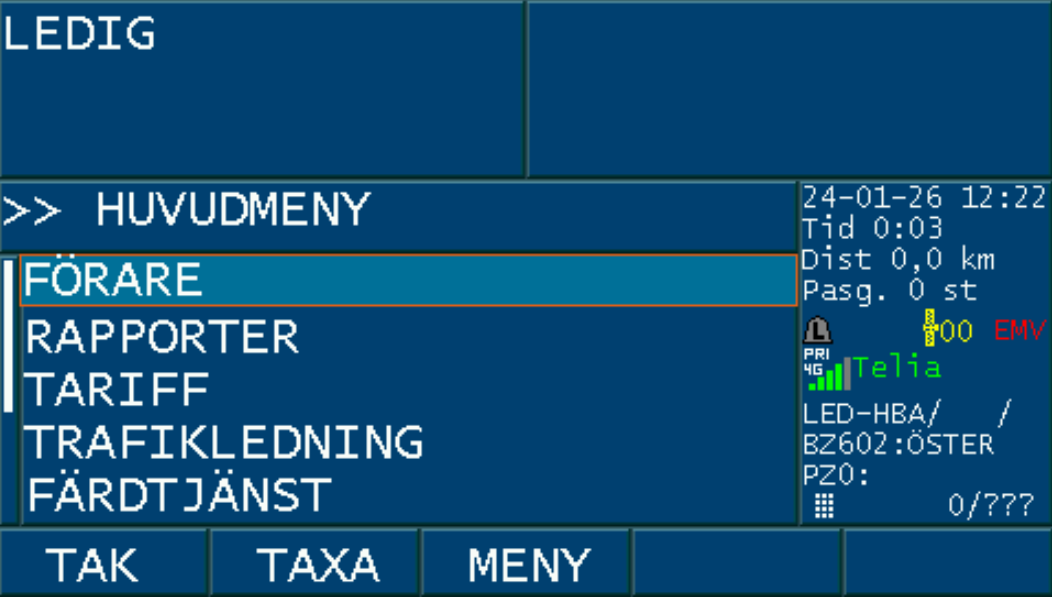 Då bokningen är accepterad med ”JA” och taxa väljs på bokningen, aktiveras PASS-läget i taxametern.