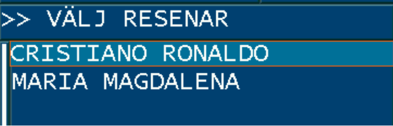 | Påstigning | Om ej påstigna resenärer finns, visas dessa. ** |